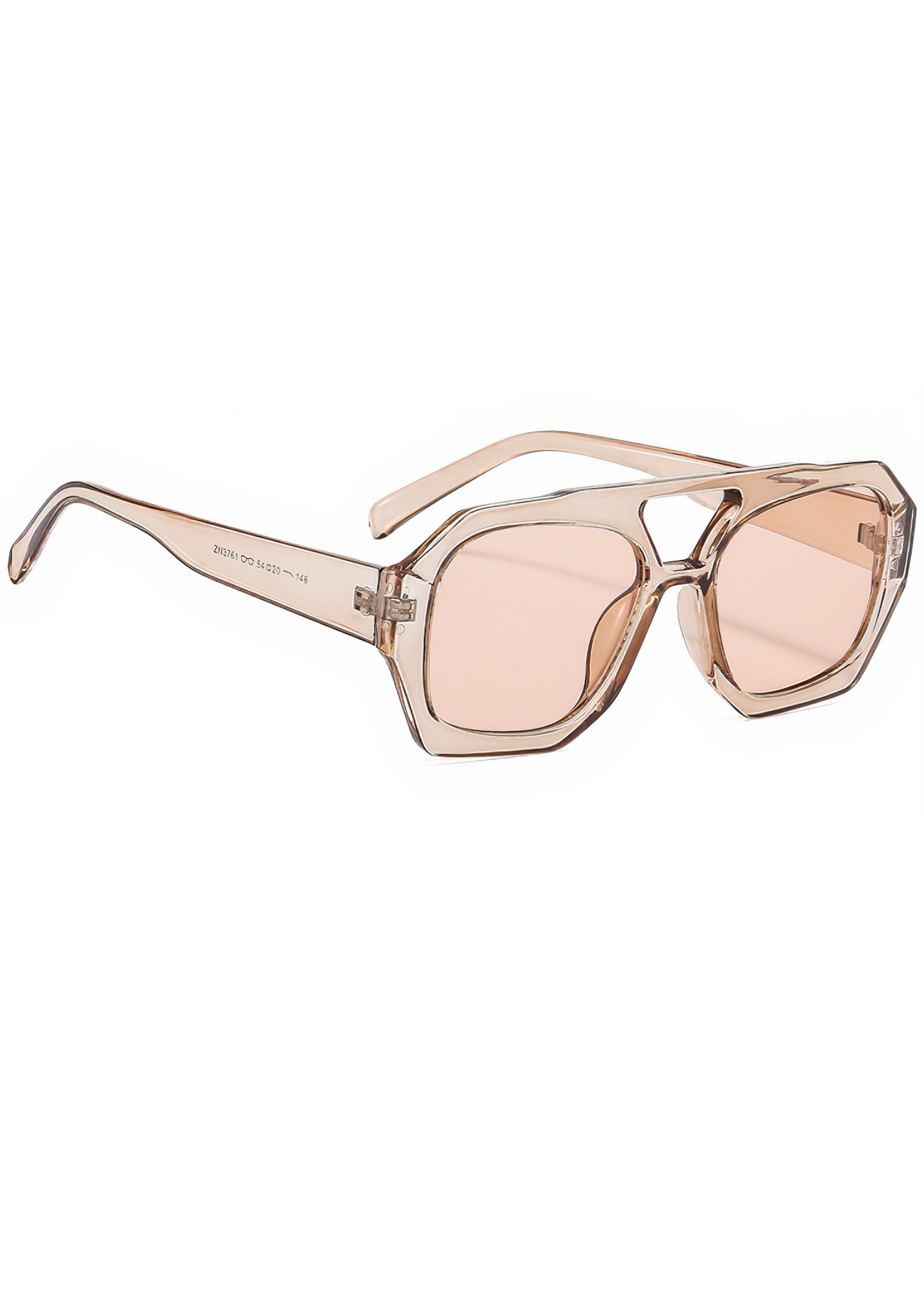 Deze handgemaakte zonnebril uit Italië is een verfijnde mix van stijl en sereniteit. Het lichtgeometrische montuur in transparant beige straalt minimalistische klasse uit, terwijl de zachtroze glazen een warme gloed geven aan elke blik. De uitgesneden neusbrug geeft een modern accent en maakt dit ontwerp tot een favoriet voor vrouwen die houden van geraffineerde eenvoud. Perfect voor zonnige lunches, stadswandelingen en rustige momenten met uitzicht op zee.