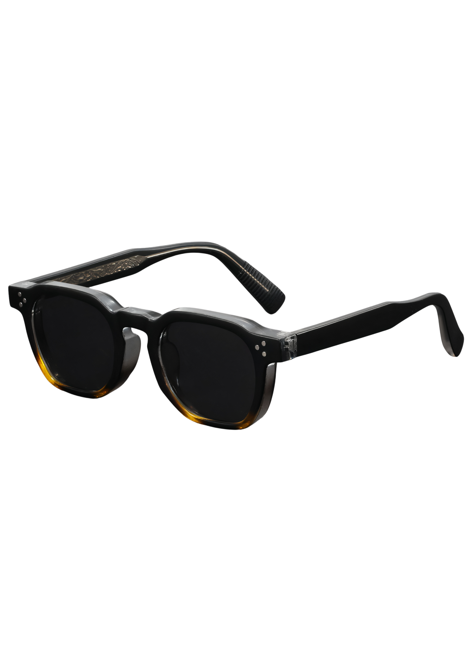 Deze zonnebril is handgemaakt in Italië en combineert een diepzwart montuur met een subtiel amberkleurig kleurverloop aan de onderzijde. De krachtige vorm en diepe zwarte glazen geven een onmiskenbaar statement van stijl en klasse. Een perfecte keuze voor wie houdt van verfijnde eenvoud met een mysterieuze touch — van de straten van Milaan tot een jacht in Portofino.