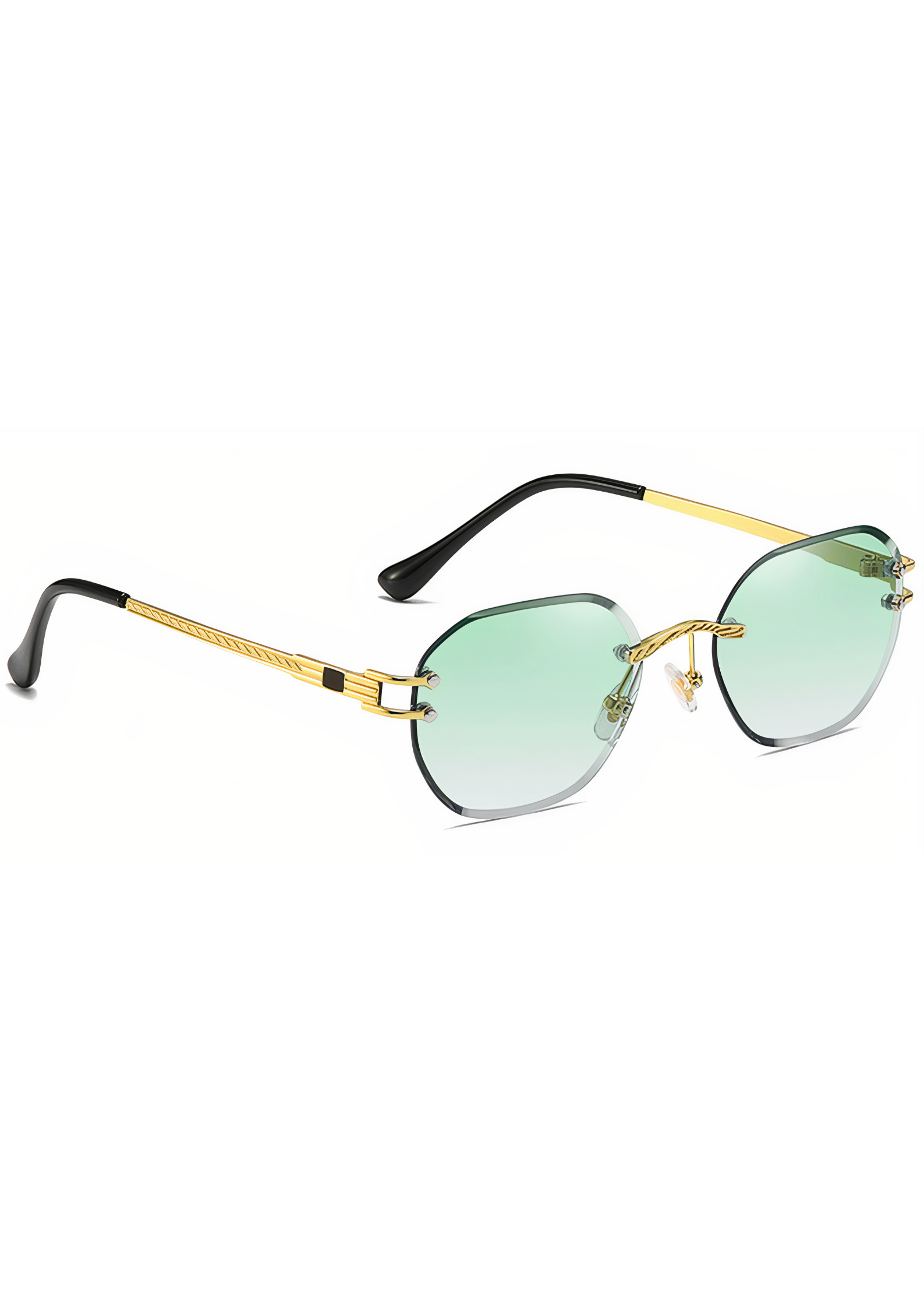 De Capri Verde is een ode aan het frisse groen van citroenbomen en dennen langs de Italiaanse kust. Deze bril ademt finesse en vrijheid, met zijn randloze glazen in een zachte groenverloop en goudkleurige metalen afwerking. De achthoekige vorm zorgt voor een moderne twist op klassieke luxe, perfect voor de stijlvolle reiziger die houdt van flair met lichtheid.