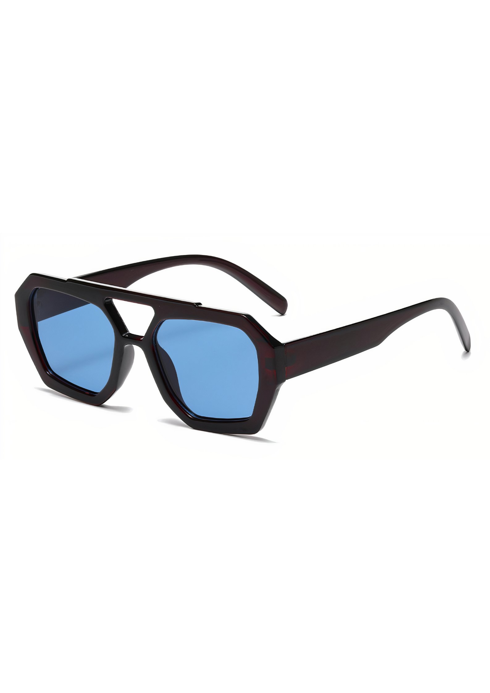 Deze handgemaakte zonnebril uit Italië straalt mysterie en zelfverzekerdheid uit. Het geometrische montuur is uitgevoerd in een diepe, bijna zwarte wijnrode tint die pas bij goed licht zijn rijke kleur verraadt. Gecombineerd met koelblauwe glazen ontstaat een krachtig contrast dat je look een eigenzinnig en luxueus accent geeft. Ideaal voor vrouwen die hun stijl durven laten spreken — op straat, aan zee of in een gallery in Roma.