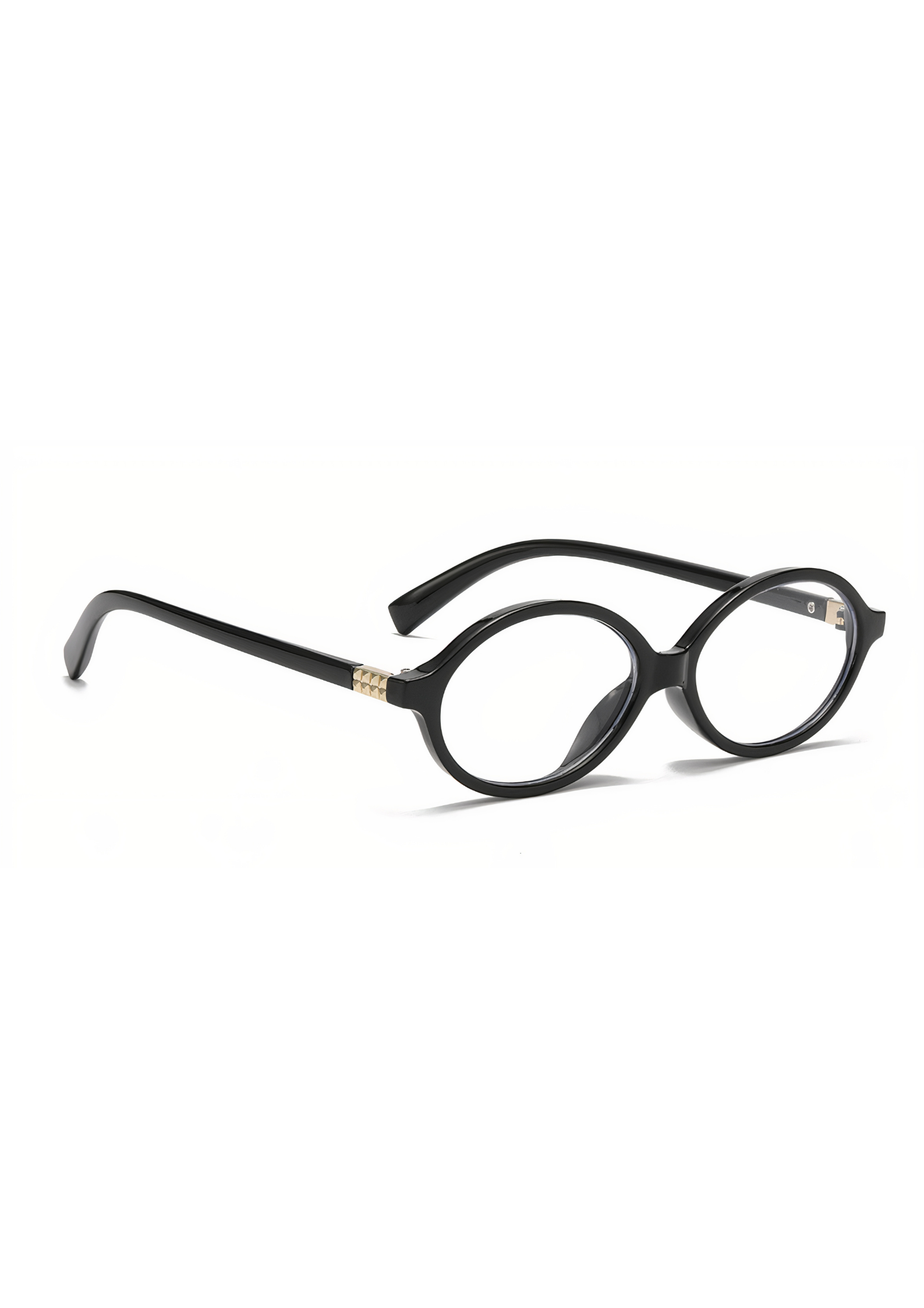 Deze handgemaakte bril uit Italië is het toonbeeld van tijdloze elegantie. Het ovale montuur in diepzwart acetaat wordt subtiel geaccentueerd door een gouden detail bij de scharnieren. De transparante glazen maken deze bril perfect als stijlvolle accessoire of als basis voor op sterkte geslepen glazen. Voor vrouwen die houden van klasse, eenvoud en Italiaanse finesse.