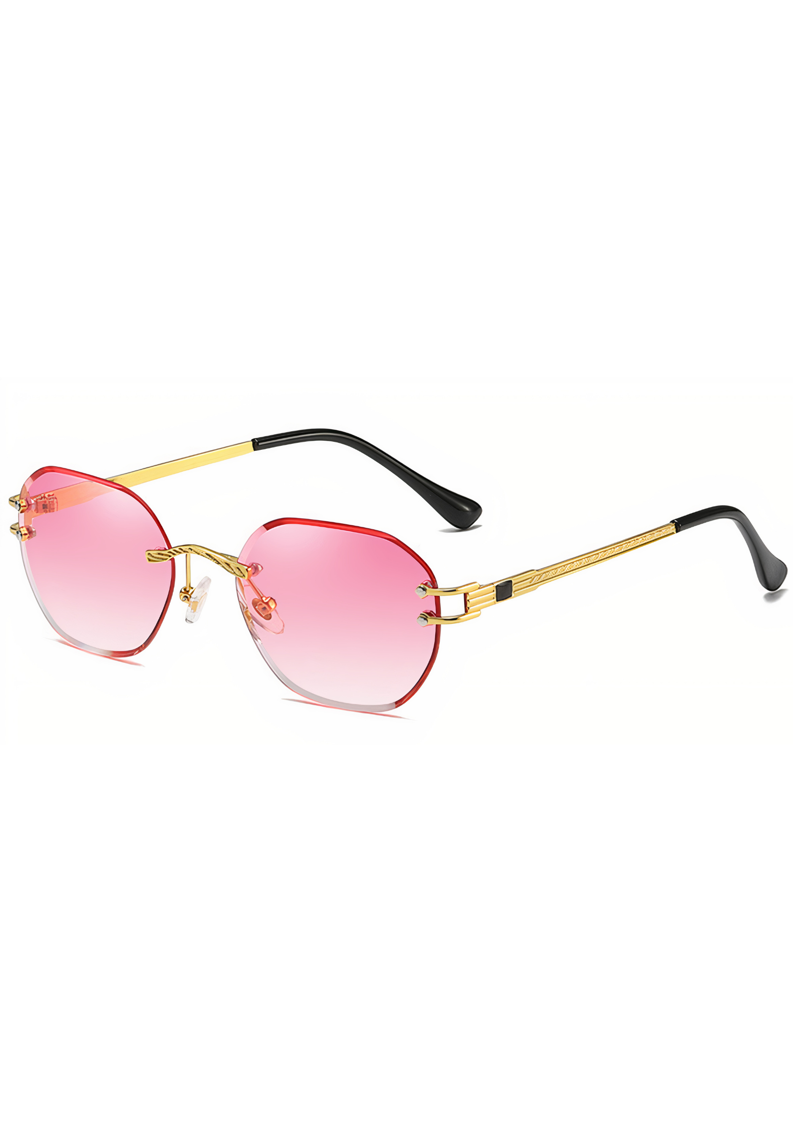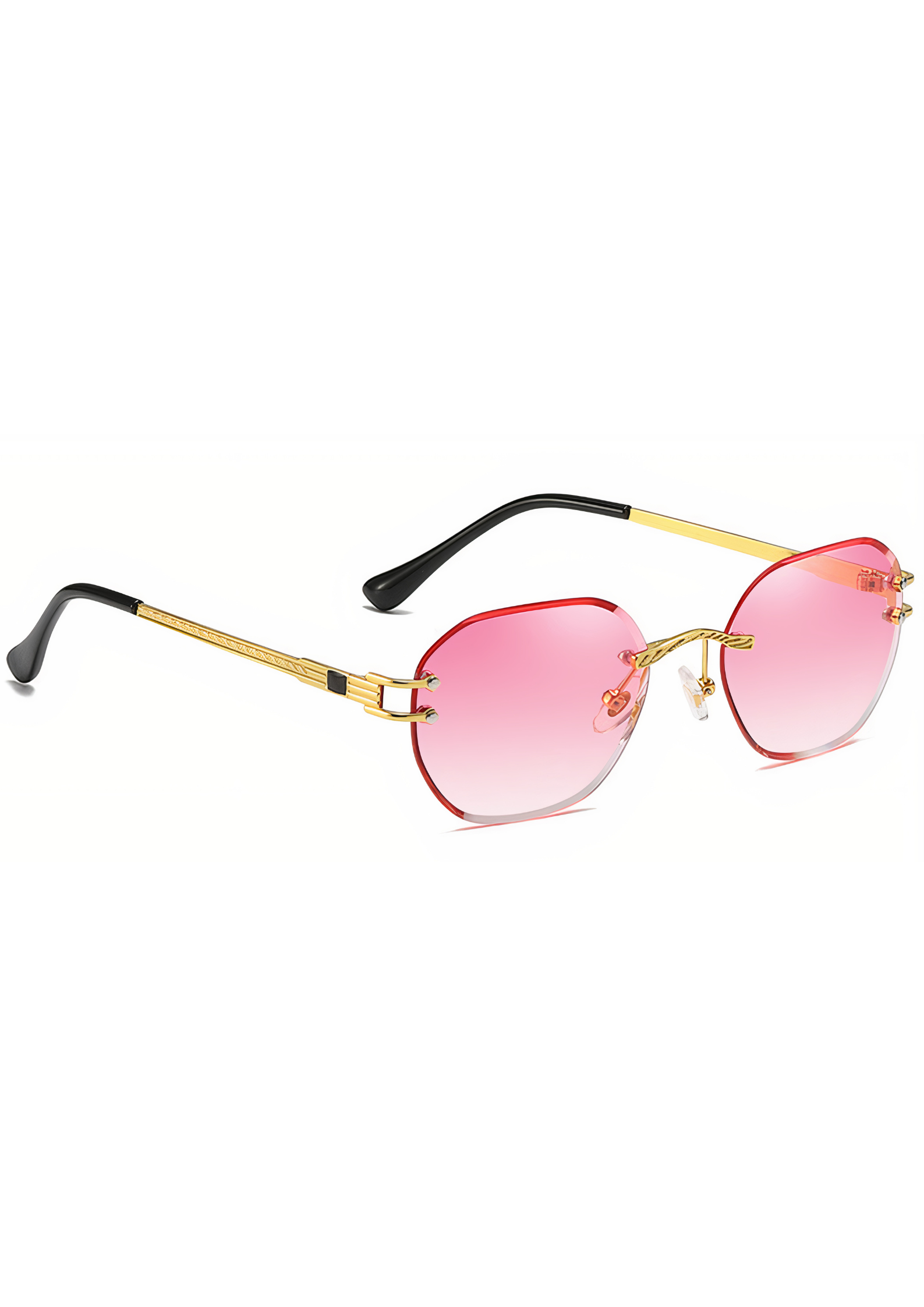 De Capri Rosa is een expressie van joie de vivre in zijn meest stijlvolle vorm. De glazen, uitgevoerd in een weelderig roze verloop, geven elke zonnige dag een romantische gloed. Het randloze achthoekige design met goudkleurige metalen montuur is een subtiele knipoog naar vintage glamour, perfect in balans met hedendaagse finesse. Ideaal voor wie houdt van elegantie met een speelse twist.