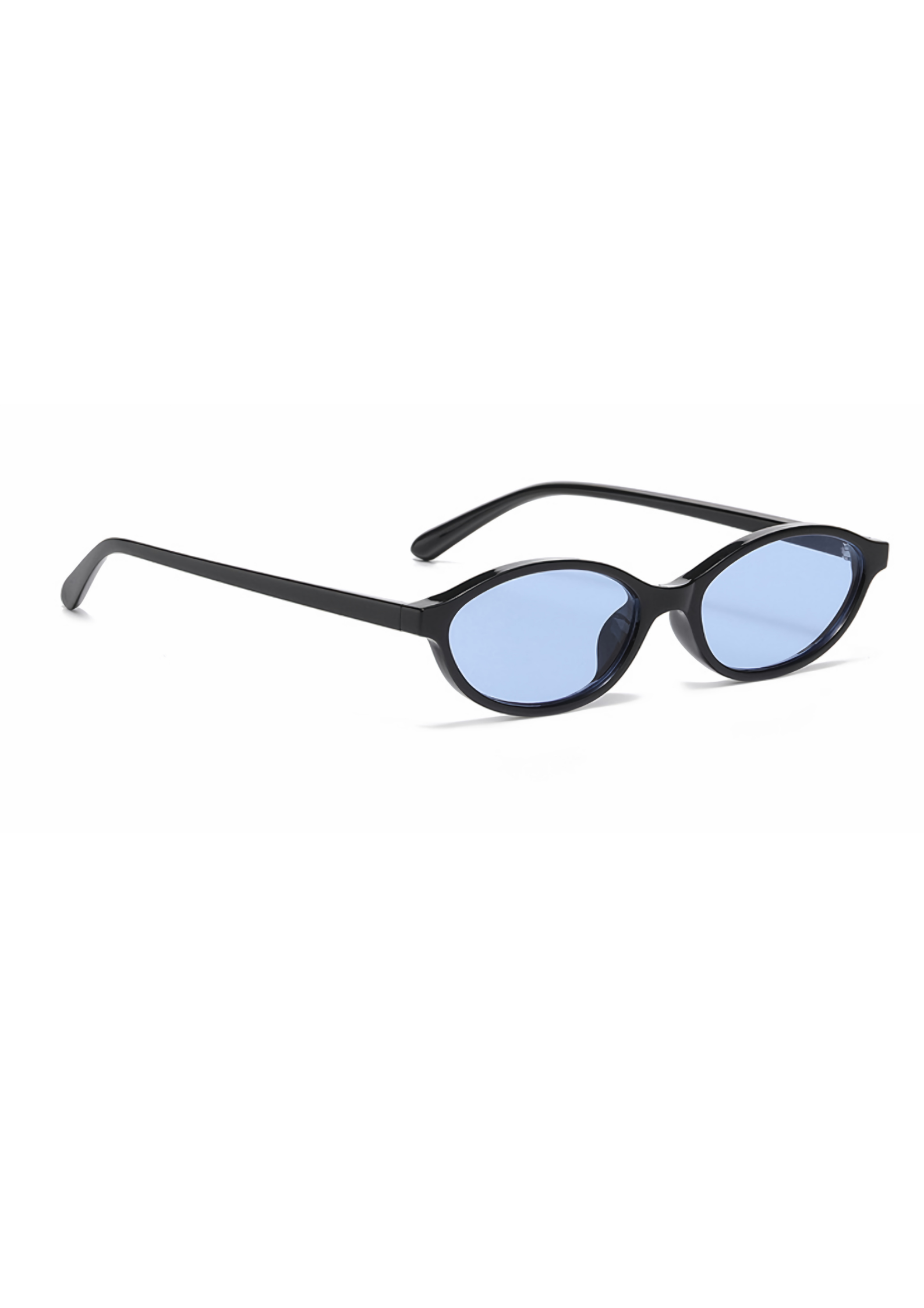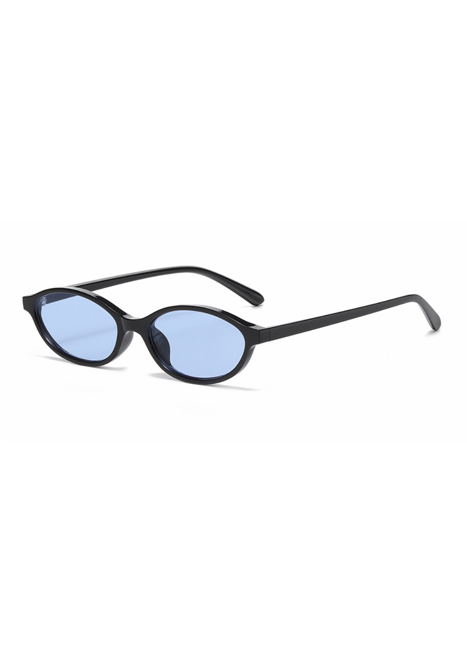 Deze elegante zonnebril is handgemaakt in Italië en combineert een strak zwart montuur met helderblauwe glazen. De zachte ovale vorm en de subtiele kleurcontrasten geven deze bril een moderne, artistieke uitstraling. Ideaal voor een dag in de stad of een culturele ontdekkingstocht in Milaan – deze bril straalt zelfvertrouwen en stijl uit, zonder te overdrijven.